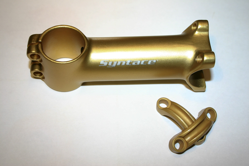 Nächstes Mal mit warmer Farblösung arbeiten (die wurde immer wieder kalt zwischendurch) und größere Gefäße (!), s. Sattelstütze (da sieht man rel. gut, dass sie 2 x halb/halb eloxiert und gefärbt wurde - kann man ja wieder). Die Teile habe ich im Durchschnitt ca. 25-30 mins hängen gehabt, die kleineren entsprechend kürzer.