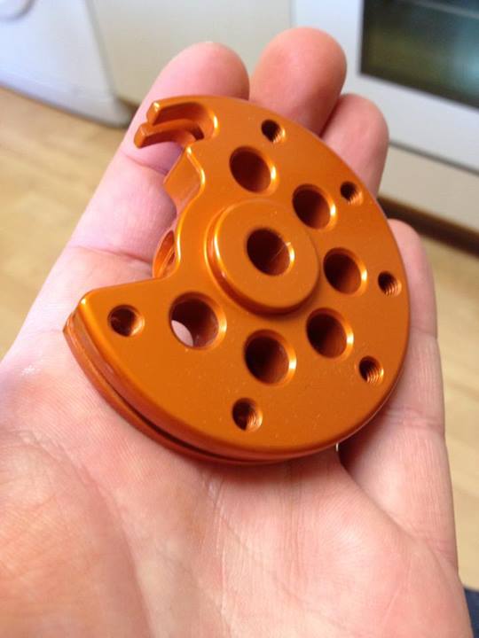 Das orange eloxierte Ding ist die Gasseilaufnahme von unserem Bergrennauto. War leider bei zuviel Strom zu lange im Bad. Ist aber trotzem noch ansehnlich.