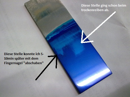2. bei nicht eloxiertem Aluteil: einfach kurz 10sec (?...oder zu kurz?) in 10% Natronlauge schwenken ?