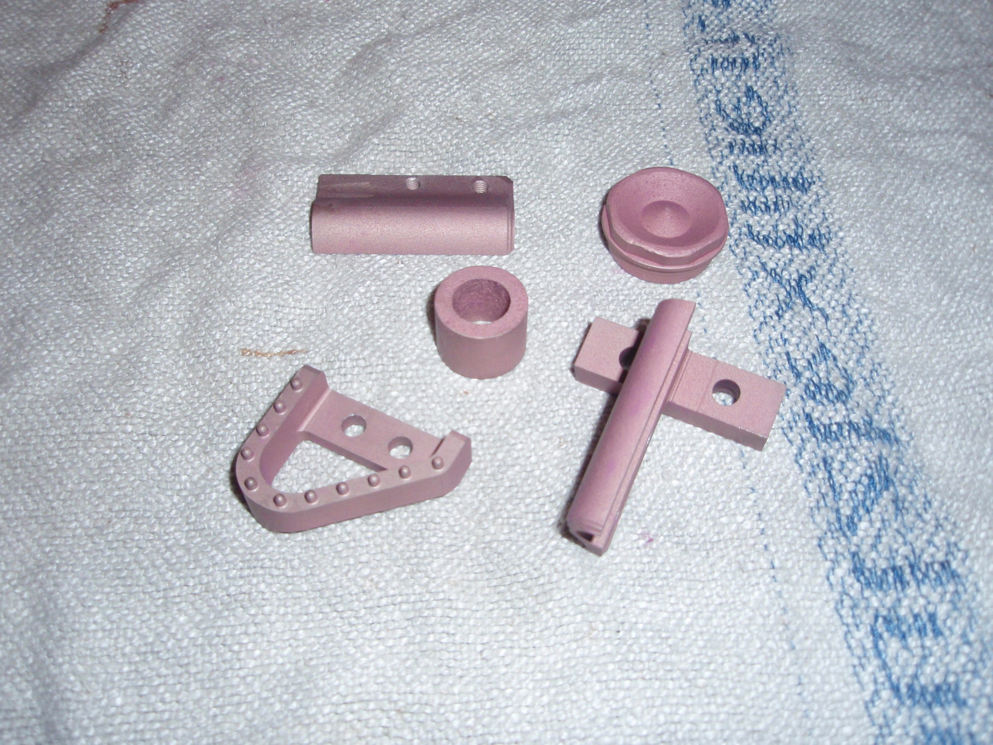 das Teil mit den Noppen ist 7075 Alu bei den anderen Teilen ist die Legierung nicht bekannt.