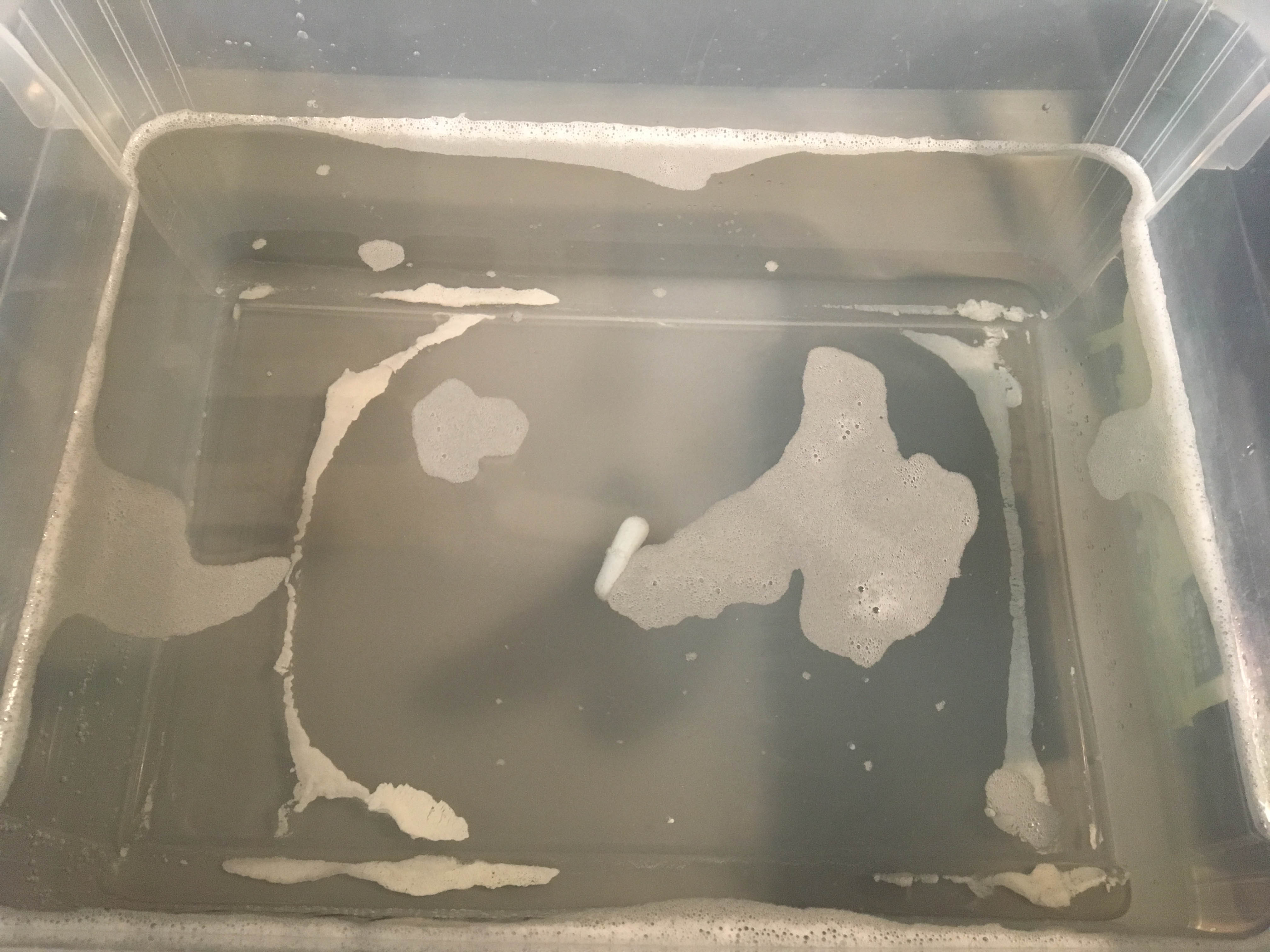 Die Ergebnisse sind so weit gut, Ich habe aber bei beiden Durchgängen zunehmend, einen weißen Bodenbelag im Säurebad bemerkt.