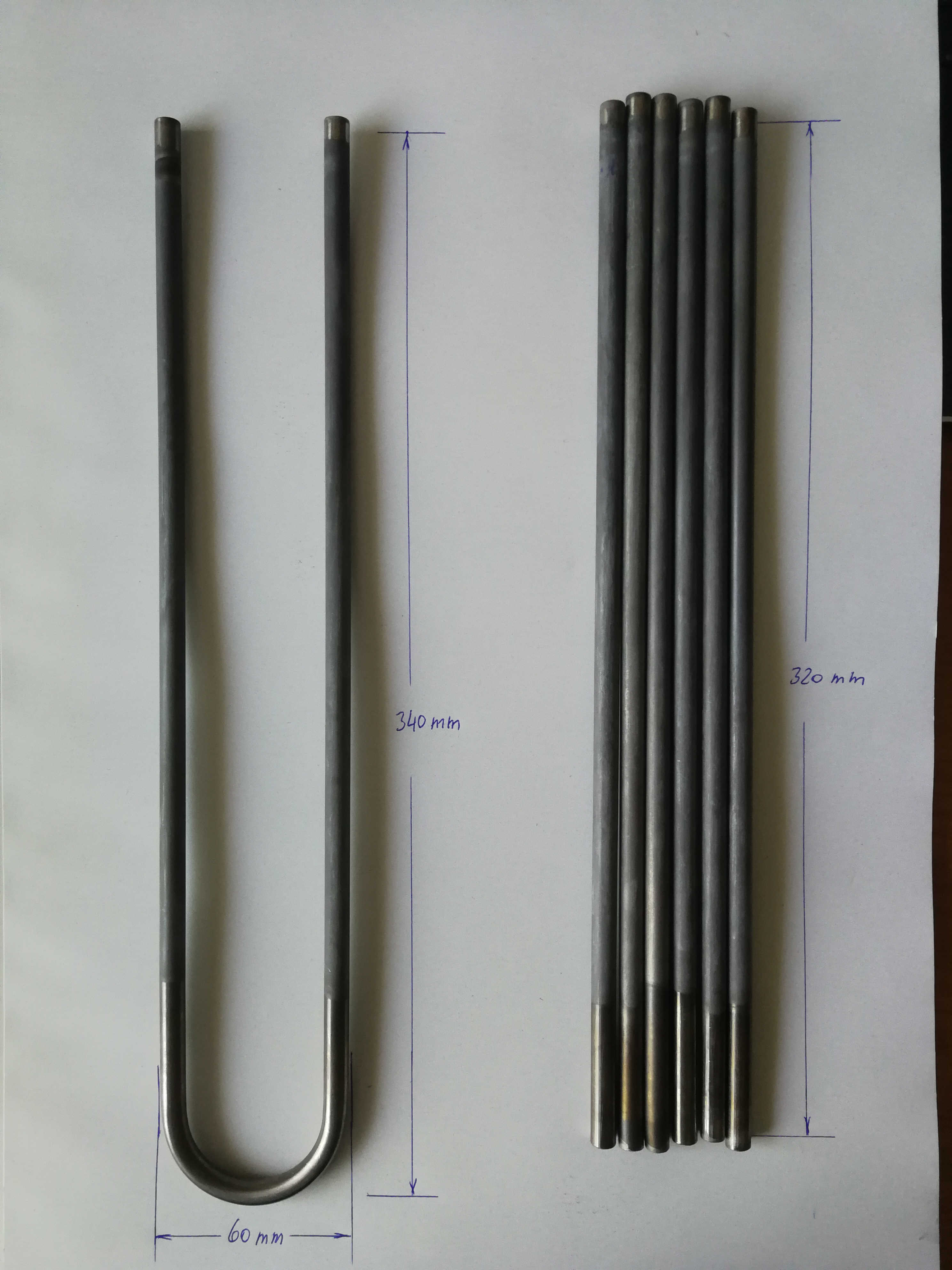 Ich verkaufe 6 gerade Titanrohre mit jeweils 32cm Länge, sowie 2 Stück U-Form gebogene Rohre wie auf dem Bild zu sehen ist mit 34cm Länge.