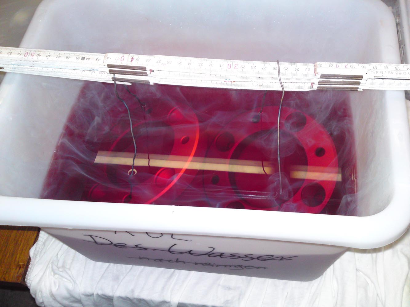 Behälter steht in einer Tiefekühltruhe, wird über nacht heruntergekühlt, wärend Anodiesierung auch