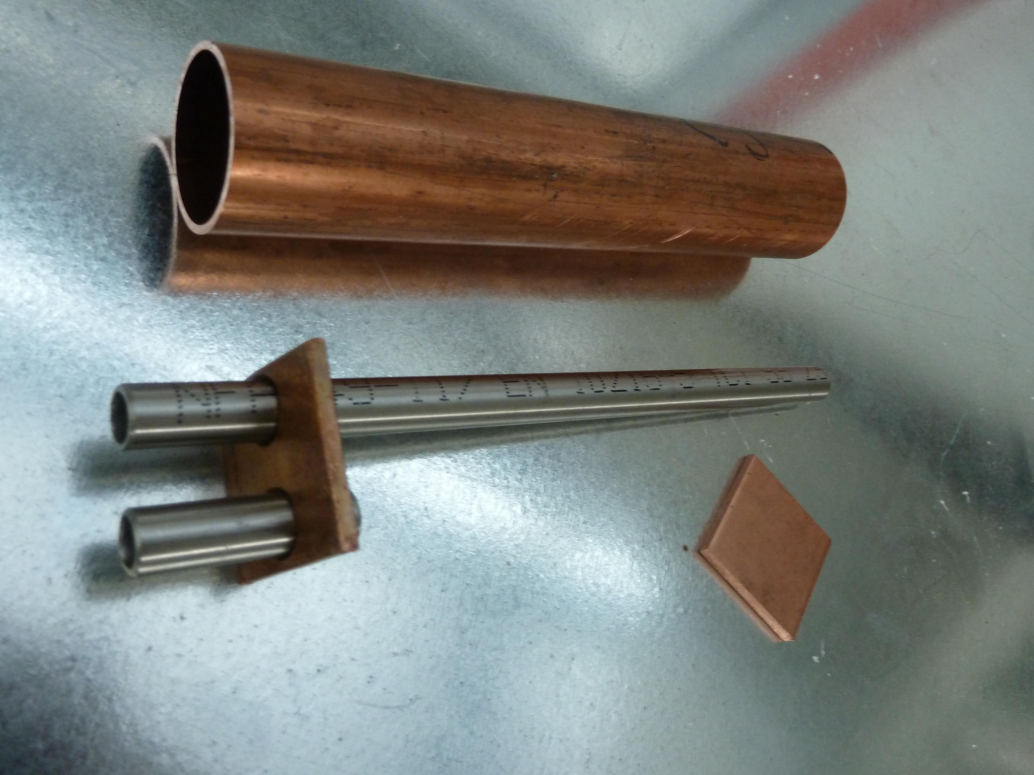 Ich arbeite gerade an folgenden Kühlelementen: Ein Stück Kupferrohr Durchmesser ca. 40mm das oben und unten je