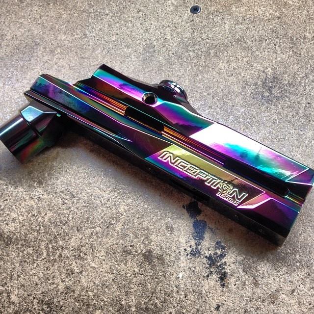 Bei der Aurora oder Oilslick Finish handelt es sich nicht um Eloxate. Das ist eine recht komplizierte Beschichtung, welche leider auch nicht sehr stabil/kratzfest ist. Außerdem leider auch noch sehr teuer. Aus diesem Grunde verwendet z.B. Planet das auch nicht mehr.