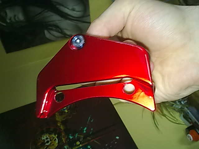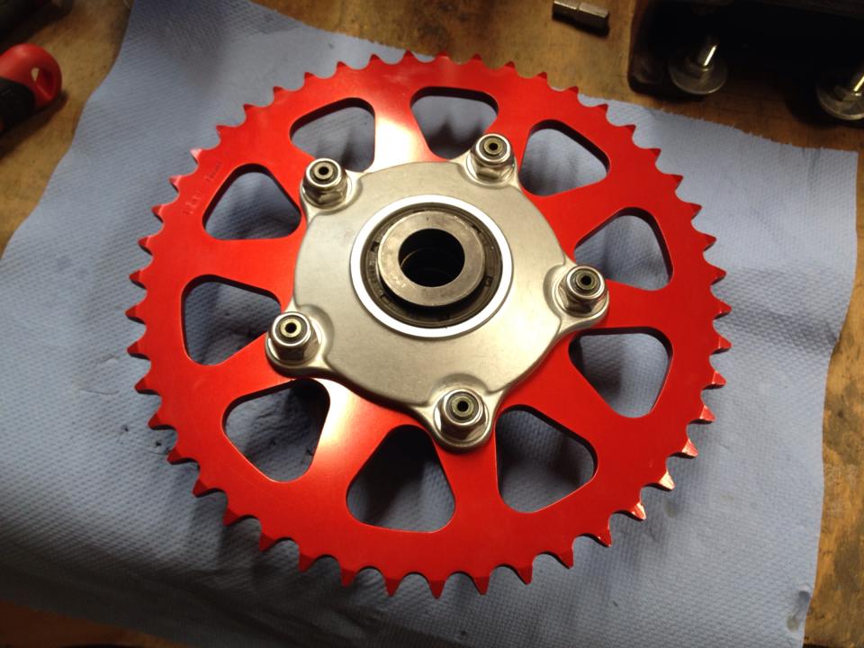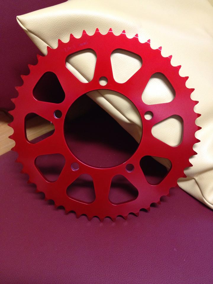 Das rot eloxietre Zahnrad gehört an mein Motorrad. Ist mir um einiges besser gelungen.