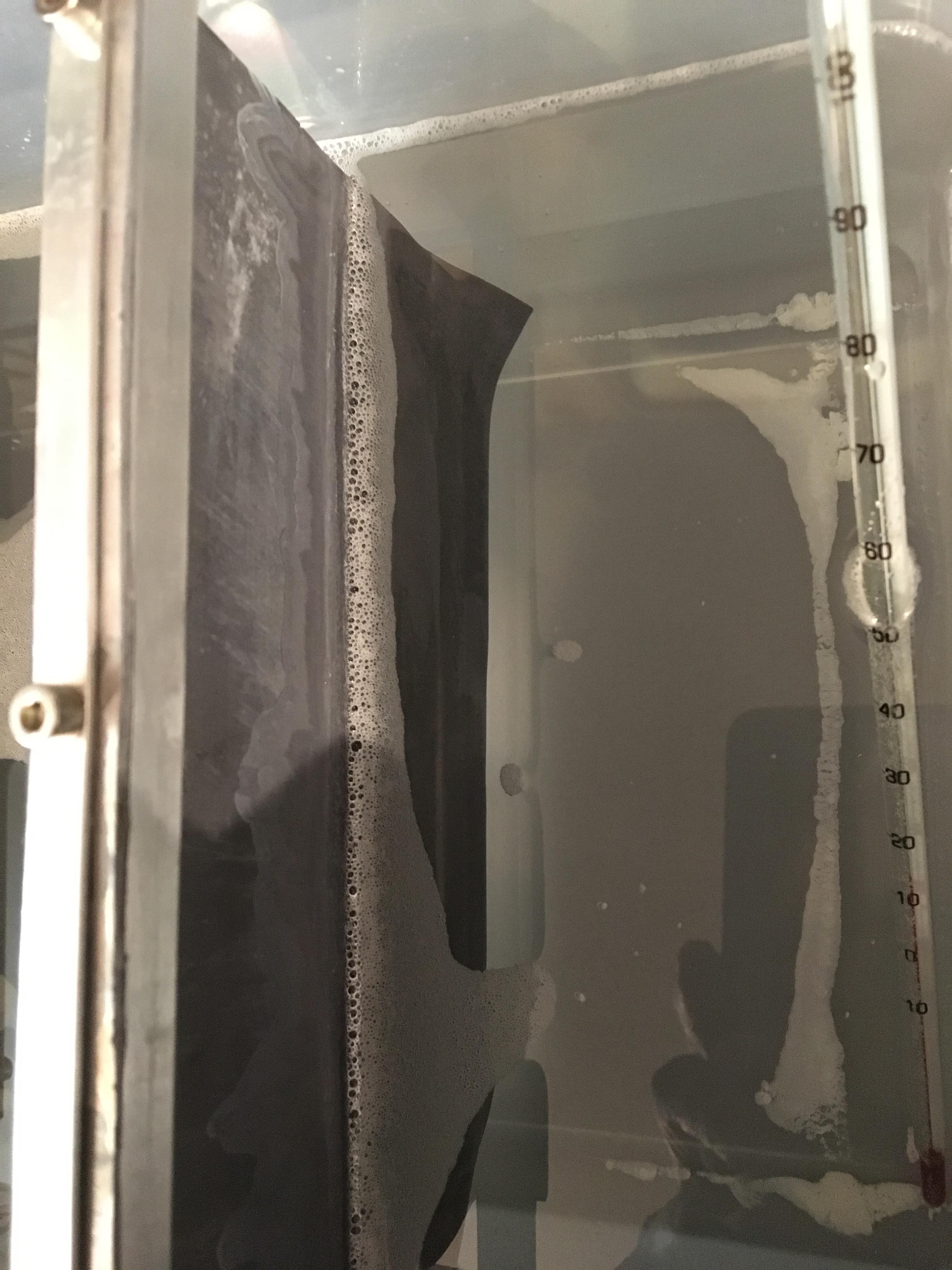 Die Ergebnisse sind so weit gut, Ich habe aber bei beiden Durchgängen zunehmend, einen weißen Bodenbelag im Säurebad bemerkt.