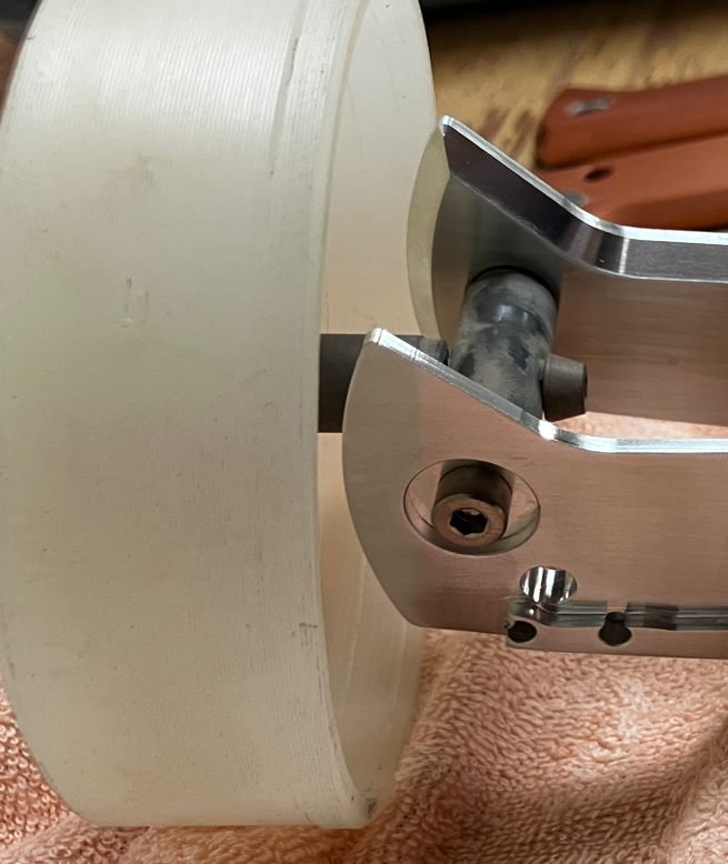 mein Setup und Prozess funktioniert inzwischen so gut, dass schöne Teile+Farben herauskommen... Aber eine Fehlstelle habe ich mindestens 50% der Zeit. Dazu 3 Bilder, von den fertigen Teilen mit Fehler, und mein Titangestell aus Rundmaterial und Titanschrauben.