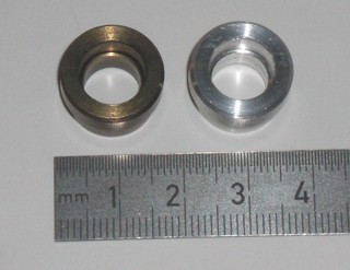 Das Ergebnis ist hier zu sehen, links das eloxierte Teil, rechts zum Vergleich ein unbehandeltes Teil.