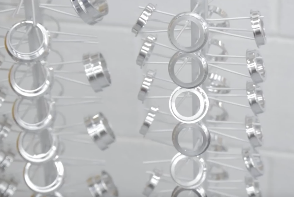 Für die Werkstückaufhängung verwendet man im Bad üblicherweise nur (Rein-)titan. Gerade bei schwierig zu kontaktierenden Stücken verhilft einem die passable Federwirkung zu einem guten Kontakt. Das ist wichtig, weil die entstehende Eloxalschicht sehr hochohmig ist. Ein auch nur leicht springender Kontakt führt dann zu einem sofortigen Stromabriss!